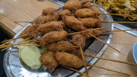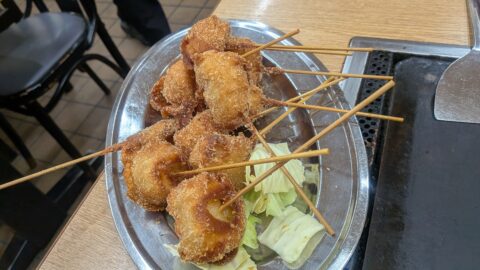 串カツは何がなにかわかりません。大皿に盛られてくるので食べてみて「あ、じゃがいも」とかちょっと食べる楽しみがあるけど外見で見分けのつかない串揚げはたくさんありますよ。それも御愛嬌です。一気に注文しなければ大丈夫ですからね。4人で串カツ100本注文でお腹いっぱいになったので締めに「焼きそば大盛り4人前」を注文して最後に焼きそばでお腹いっぱいになりました。「だるまや 2号店」さんでぜひ焼きそば食べてみてください。チープですが旨いです。